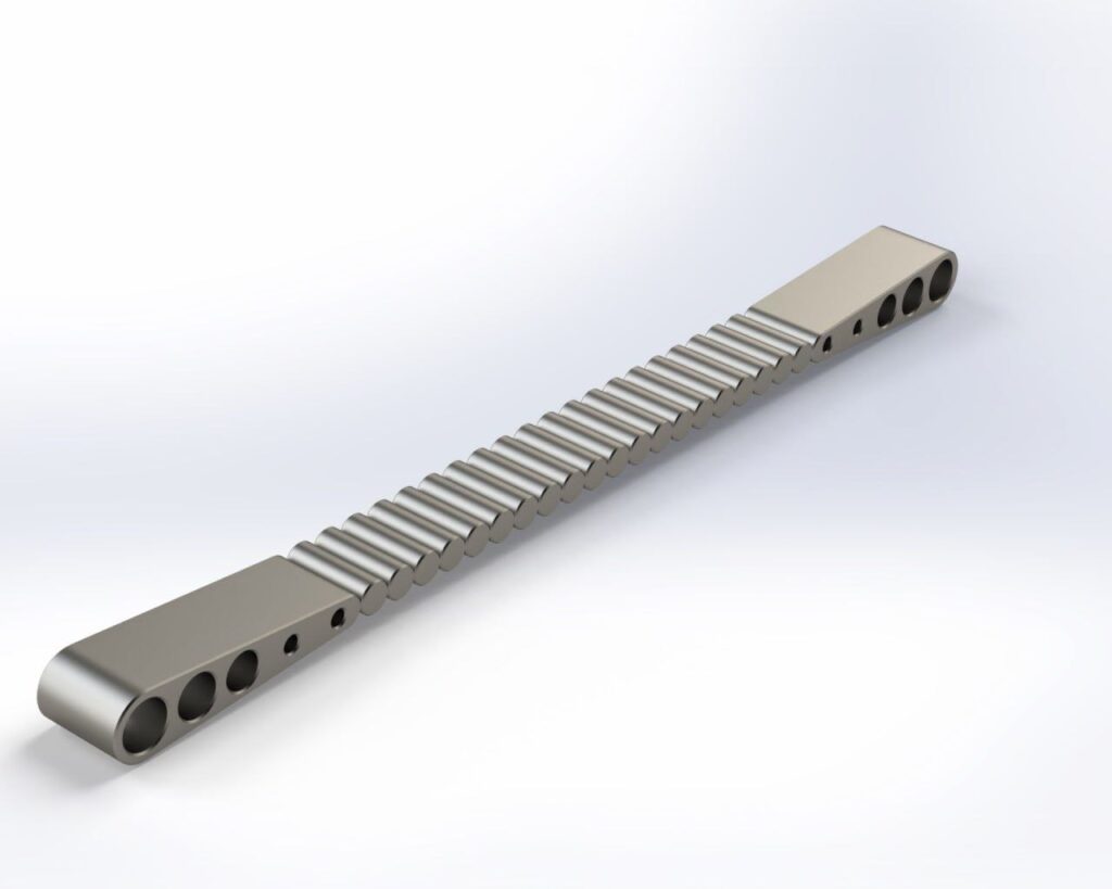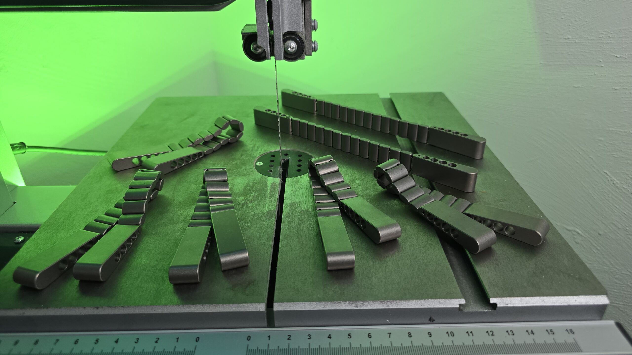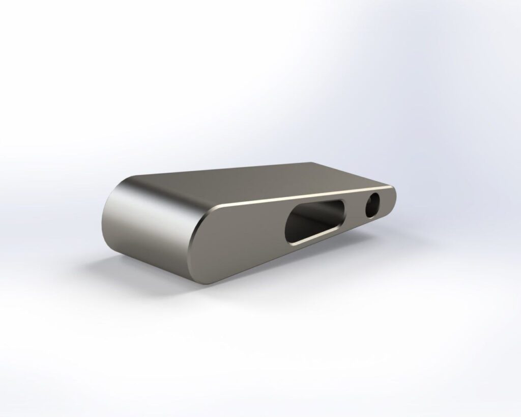 После утверждения дизайна начинается сложный процесс изготовления. Материал закупается из Китая — это вторая марка титана. Заготовки и звенья обрабатываются на высокотехнологичном ЧПУ-станке стоимостью около 80 000 долларов с использованием специальных приспособлений. Обязательно применяется регулярное охлаждение водой, так как титан сильно нагревается во время обработки: без этого обычная машина просто не сможет его порезать, а нагрев при этом делает металл ещё крепче. Все брызги разлетаются в процессе, создавая свои технические сложности. Несмотря на автоматизацию, часть операций выполняется вручную: мастер контролирует точность фиксации каждой детали, чтобы заготовка не получилась неровной. После подготовки звенья собираются вручную, а наконечники проходят особую обработку: сверловка, развертка, зингование и шлифовка ниткой с полировочной пастой, что занимает около получаса на один наконечник. То есть на два наконечника одной работы уходит как минимум один час, чтобы вывести отверстия «в зеркало» и обеспечить плавный ход и долговечность нити.