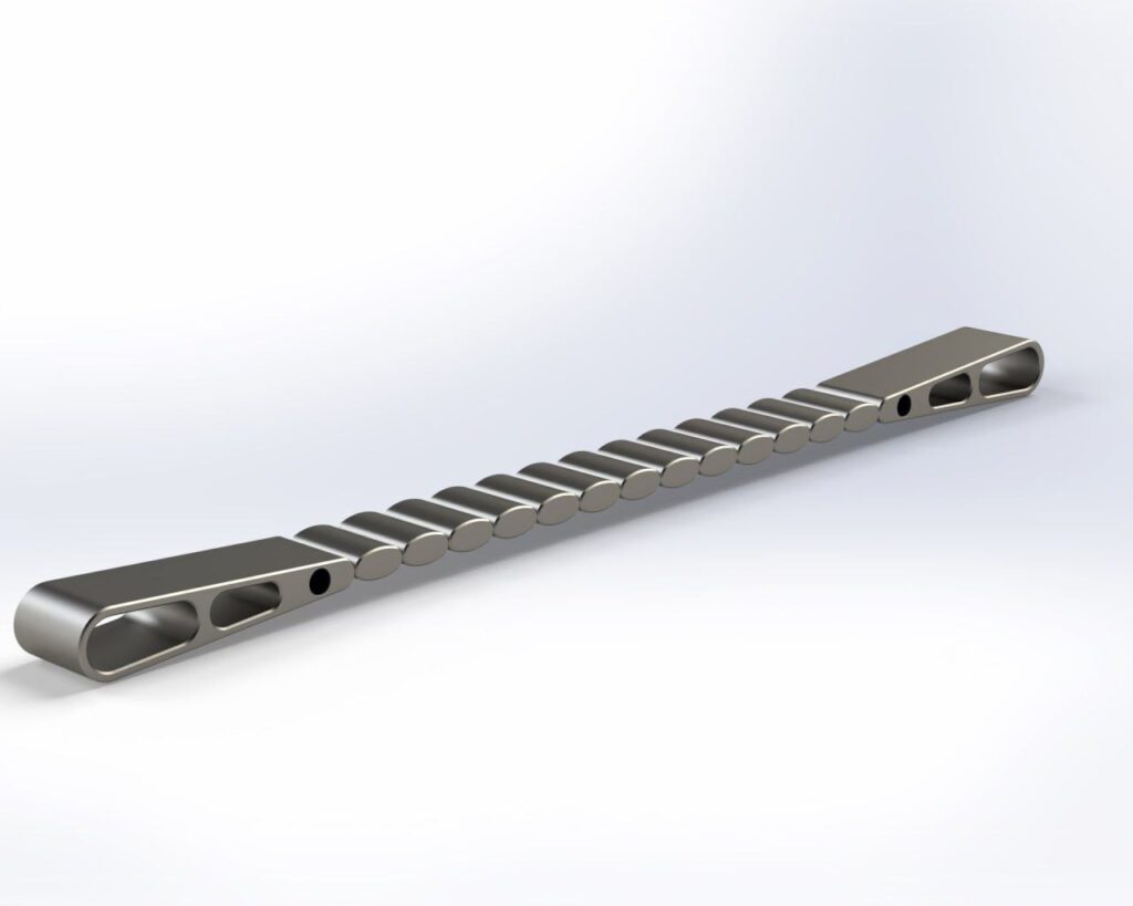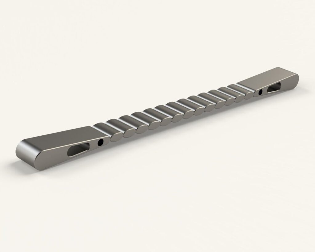 Дизайн титановых чёток создавался через несколько проб и ошибок — было сделано около шести вариантов, пока не был найден оптимальный и максимально практичный. Узкая форма выбрана для того, чтобы чётки из титана имели оптимальный рабочий вес — всего 78 грамм — и при этом оставались удобными для кручения. Наконечники слегка облегчены, а торцы сохранены для правильной центровки и баланса во время вращения. Каждая деталь была тщательно просчитана, чтобы обеспечить идеальную центрифугу и комфортный вес изделия. Звенья в виде подушечек дают мягкий ход, исключают лишний напуск и позволяют чёткам плавно скручиваться. Такая форма делает их универсальными: удобно как крутить вертолетом, так и перекидывать активными движениями. Дизайн подходит и для агрессивных вертолетов, и для динамичных перекидываний, сочетая комфорт, функциональность и продуманный баланс в каждом звене.
